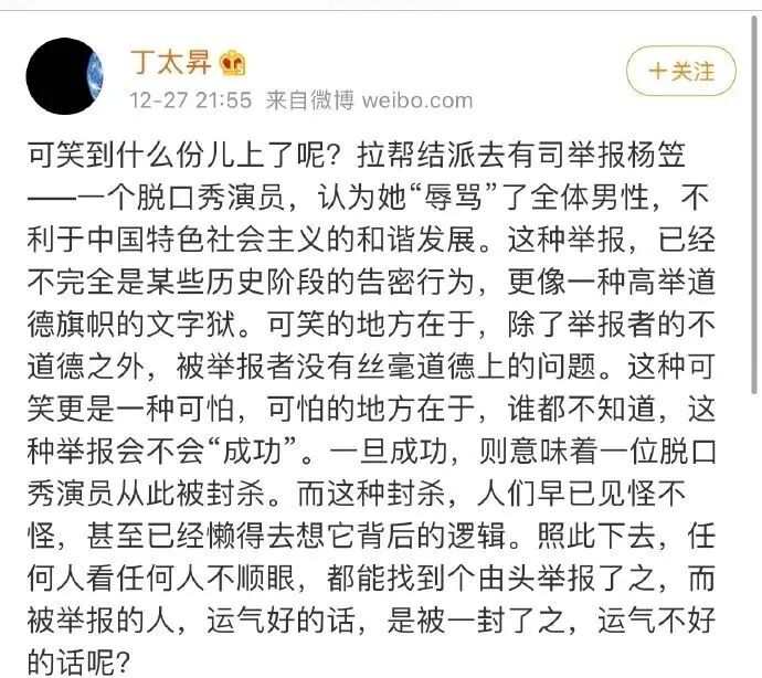 丁太昇:除了举报者的不道德之外,被举报者没有丝毫道德上的问题。