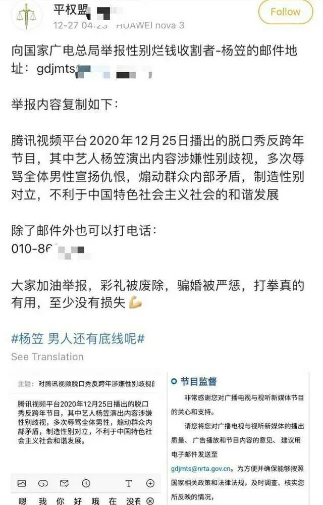而大批网友的骂战,却又从单纯的攻击段子,上升到了攻击杨笠这个人本身: