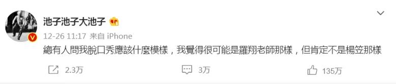 但更多的微博网友看完池子的表态后更加不满,纷纷找出当年池子在吐槽大会上不雅言论来质问:“当年不也这样过来的吗?怎么现在开骂了?”