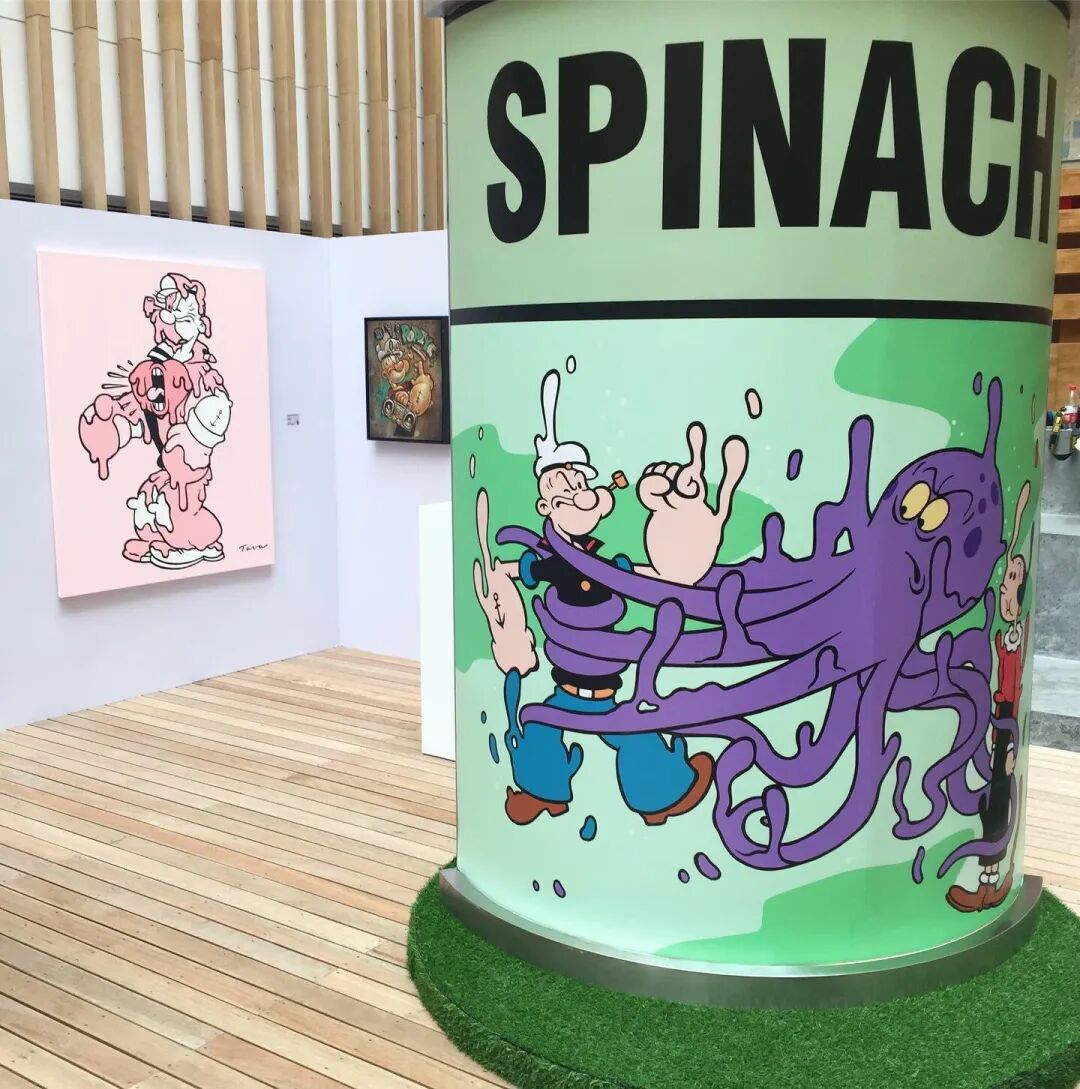 T影视A本名Antoine Tavaglione,是一位来自加拿大蒙特利尔的潮流艺术家,其招牌的创作形式,便是将经典的卡通形象和品牌Logo等创作对象,像冰激凌一般融化,而这种极具标志性的创作手法,不仅让他被人们所熟知,更是得到了众多品牌的青睐。