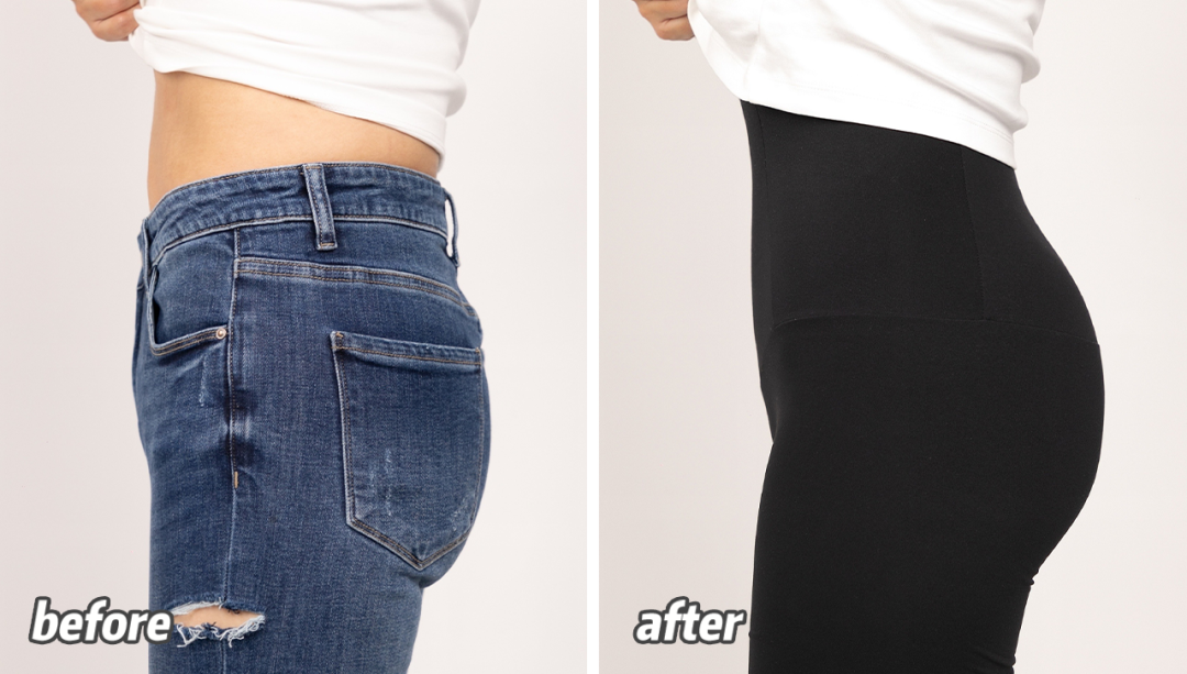 轻松 get 蜜桃臀:超模裤让臀部360 度看都是圆润、紧翘,显瘦且有型。▼