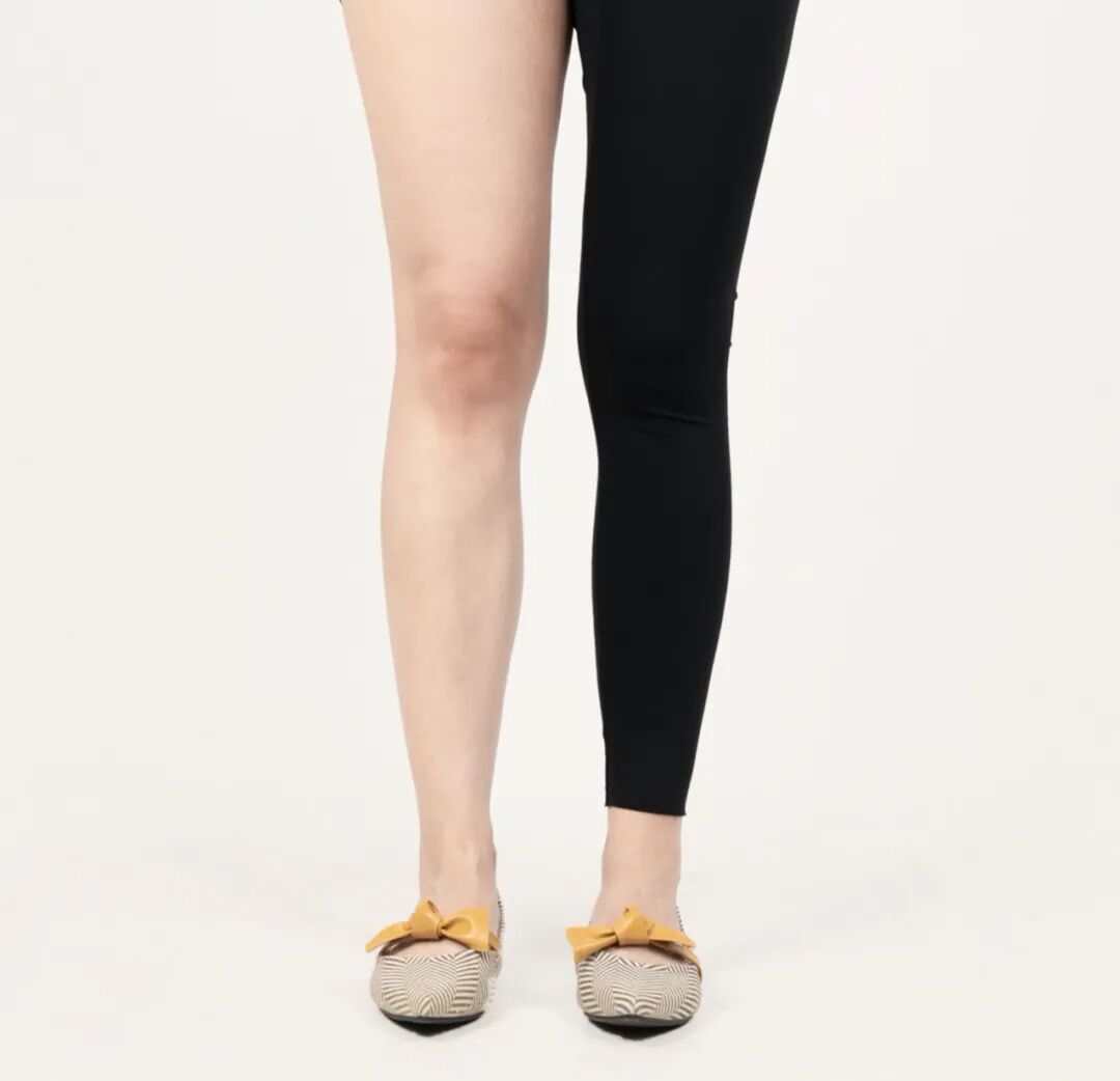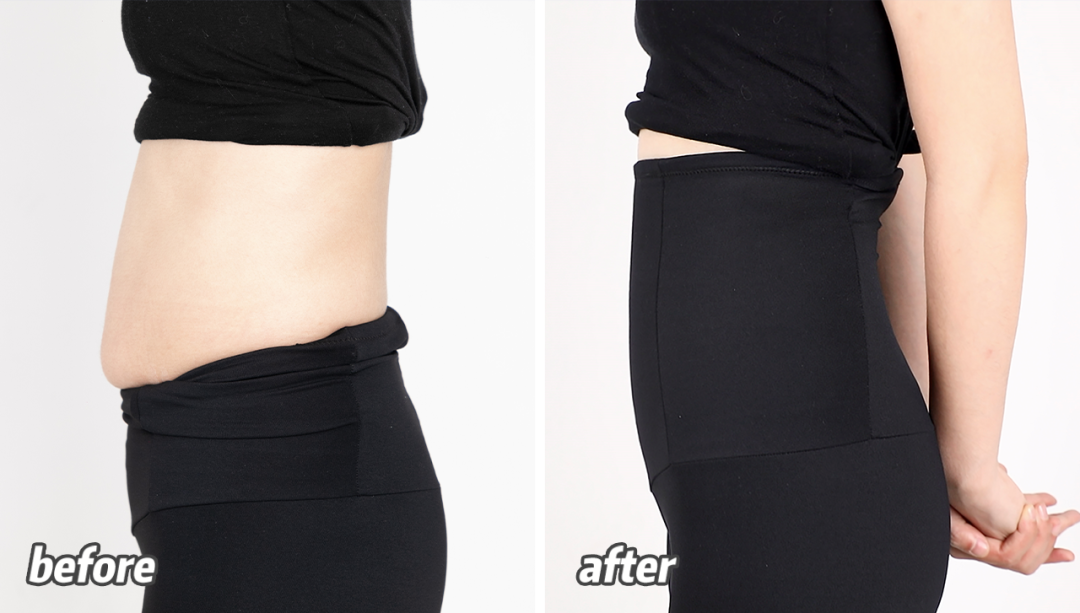 这是一条全面塑形的紧身裤,穿上直接告别大象腿,扁塌臀,泳圈肚。看下左右腿对比图,不夸张,视觉腿围,真的小了一圈!轻松收腹束腹:穿上后,小肚子被收起来了,腰看上去也细了一圈!▼