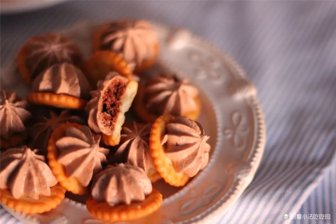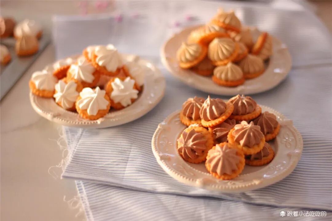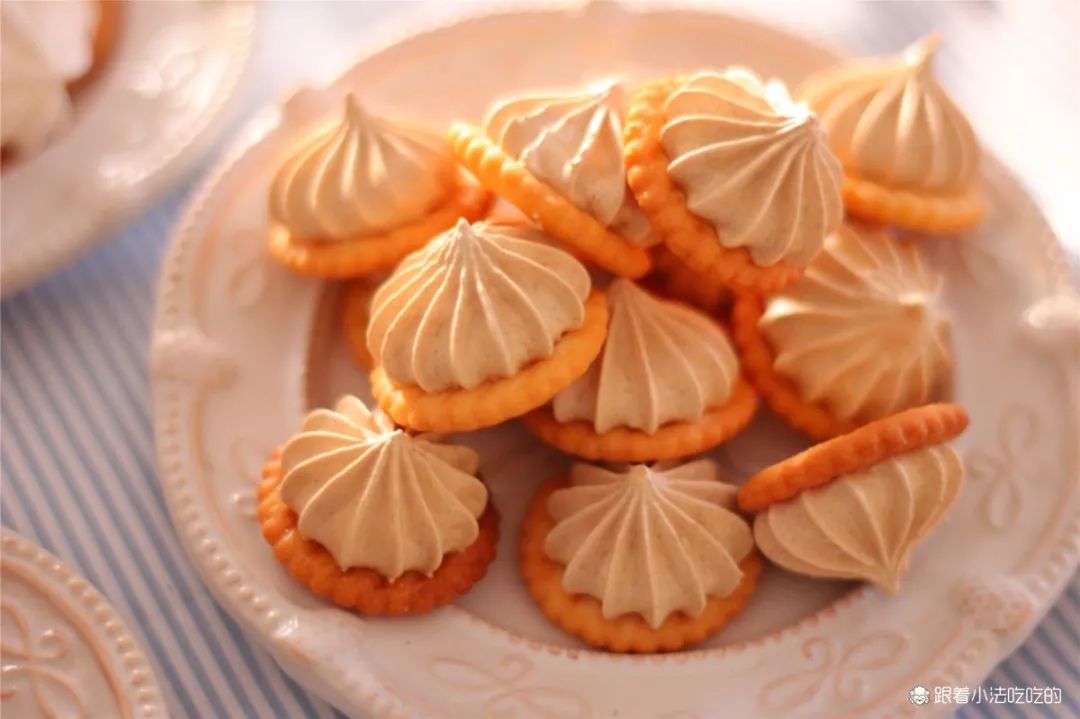 简单又好吃的糖+饼干,而且成本真的不高!会改变你对蛋白糖的看法的~饼干就是咱们做雪花酥常用的饼干,用其他造型饼干也是可以的。本身带细盐颗粒,有微微的咸口,和岩盐味的饼干搭配,大大减少了蛋白糖的甜度。从口感来说,脆脆的糖果+脆脆的饼干,整体酥酥,放心大口嚼就可以啦!蛋白糖调味超好吃!快手好出单!每一个棱角都分明,苦甜适中,高级感满满,下午茶来一个,特别舒爽!花粘饼干