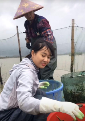 通过网络,带领村民,她们也把家乡的水产卖到了中国各地。