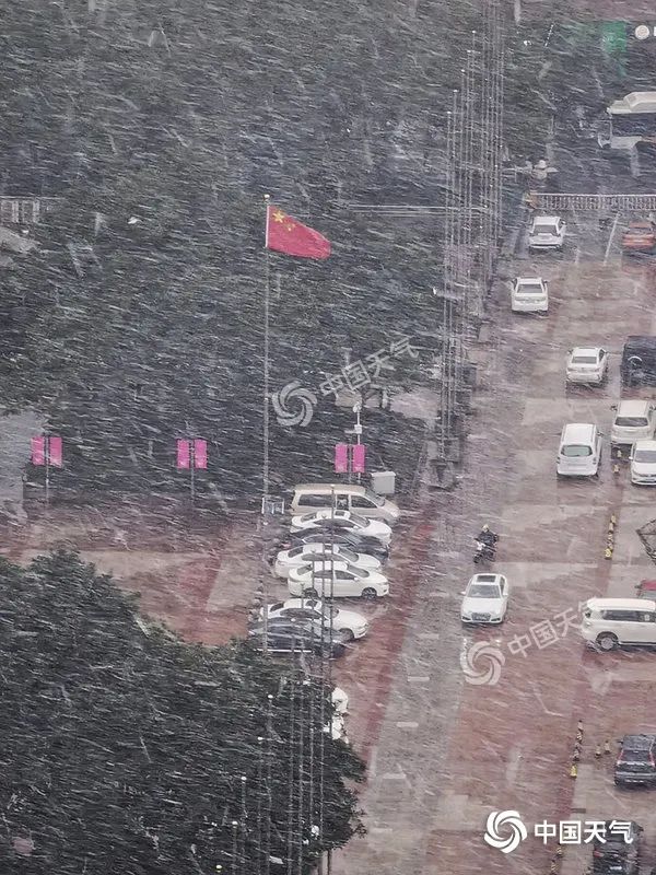 ▲2020年12月29日,武汉国际会展中心前广场,大雪纷飞。(缪德杰/视觉中国/版权图片 来源视觉中国)