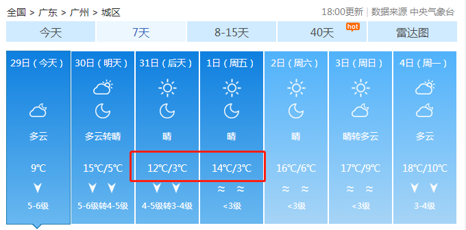 昆明、广州、南宁、海口、台北、香港、澳门,明天最高气温都将跌至20℃以下,最低气温甚至不足10℃,即便是海口,明天最高气温也只有14℃左右——寒潮喊你加绒啦!