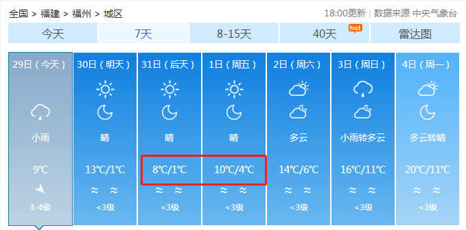 福州今天最高气温还能达到24℃ 后天仅有8℃