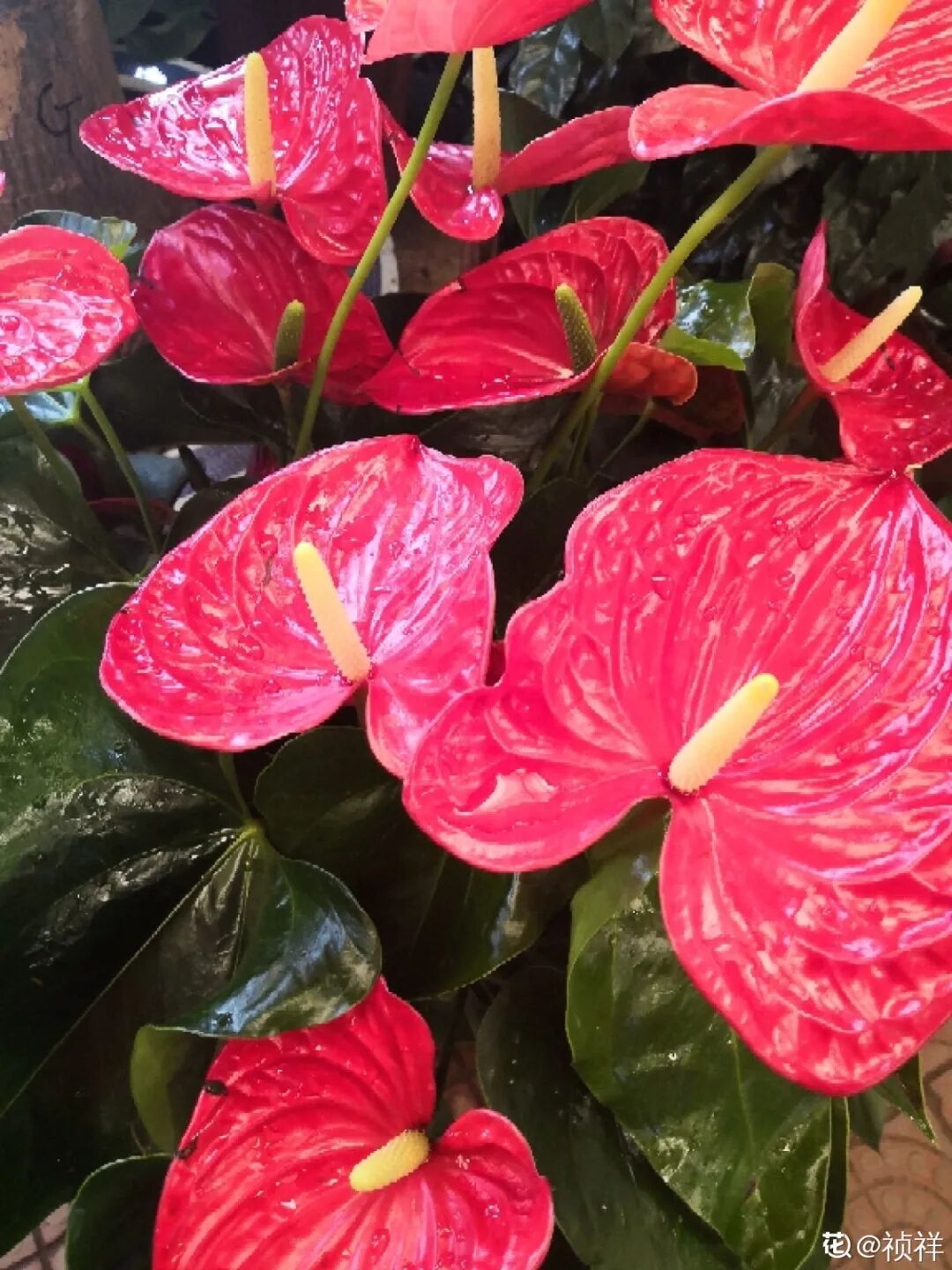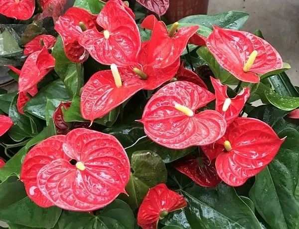 红掌的外形艳丽,翠绿的叶子搭配红灿灿的花朵,而且花朵中心还抽出金色的花穗,代表金钱,所以红掌象征着鸿运当头,财源滚滚,家里办喜事或者新店开张,都适合送一盆红掌。