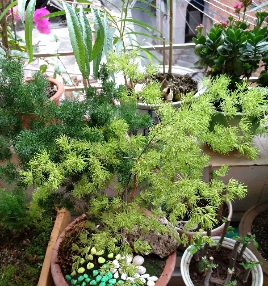 蓬莱松在家养,适合放在住宅入门的地方,蓬勃的生命力让家里充满生机,还能镇宅守家,财源滚滚,如果在室内养,可以摆在玄关位置,寓意招财进宝。