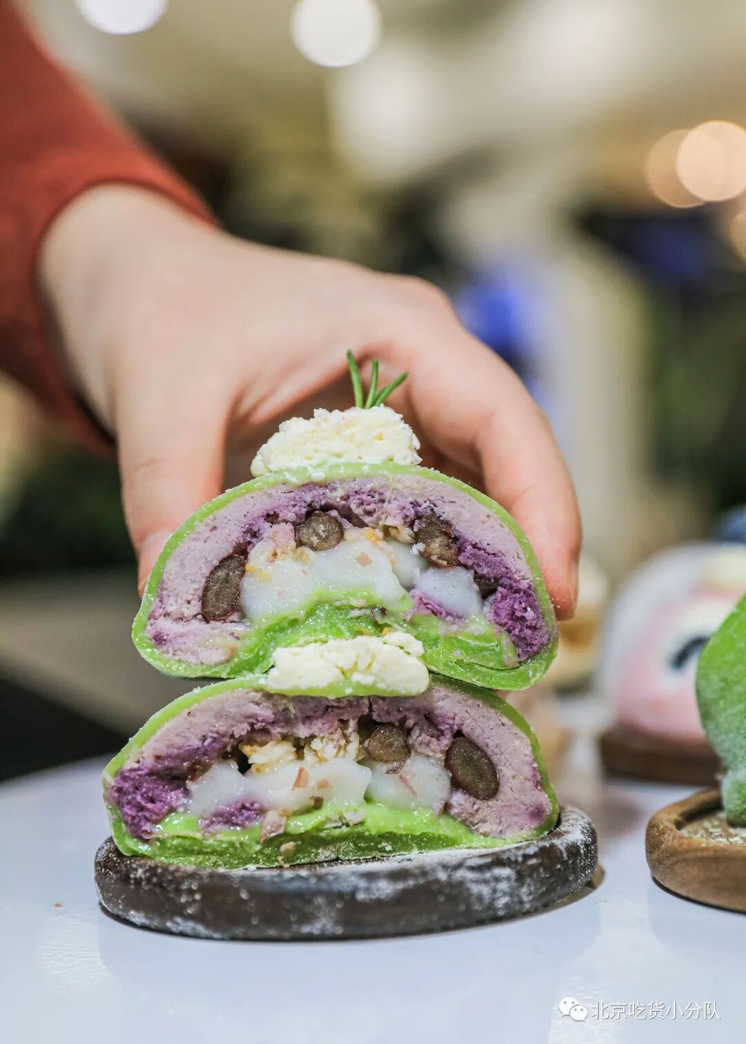 口味选择众多:经典芝麻白糖味、海苔肉松味、咸蛋黄味,还可以双拼。同时店里还有手工麻糍可以吃!边吃边逛,太治愈了~