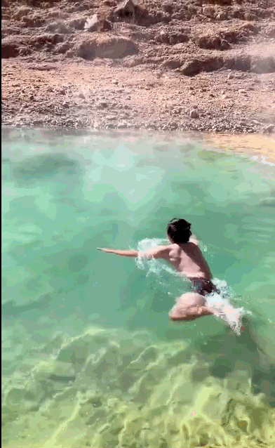 甚至在雪山脚下遇到温泉,王相军会直接泡进去。