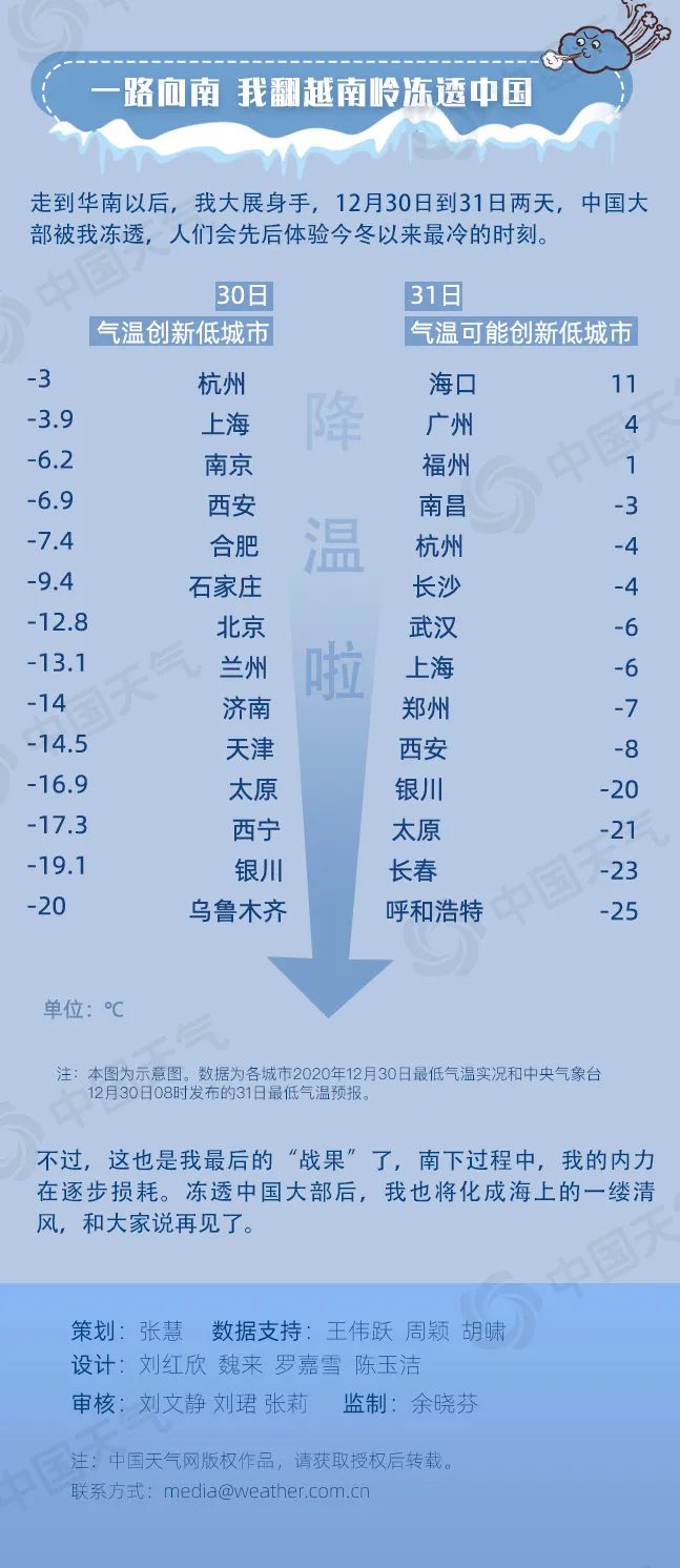 我叫寒潮,2020年12月底来到中国,“跑遍”大江南北,冻透大约八成国土,大家都叫我“年度霸王级寒潮”。