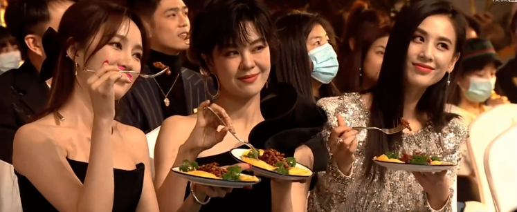 年底的某时尚盛典现场,杜淳隔空连线乘风破浪的姐姐孟佳、郁可唯、黄圣依,给她们一人赞助了一盘蛋饺肉丝,还来了一段静音版的同名舞蹈教学。被“捆绑营业”的姐姐们,似乎都笑得有些尴尬。