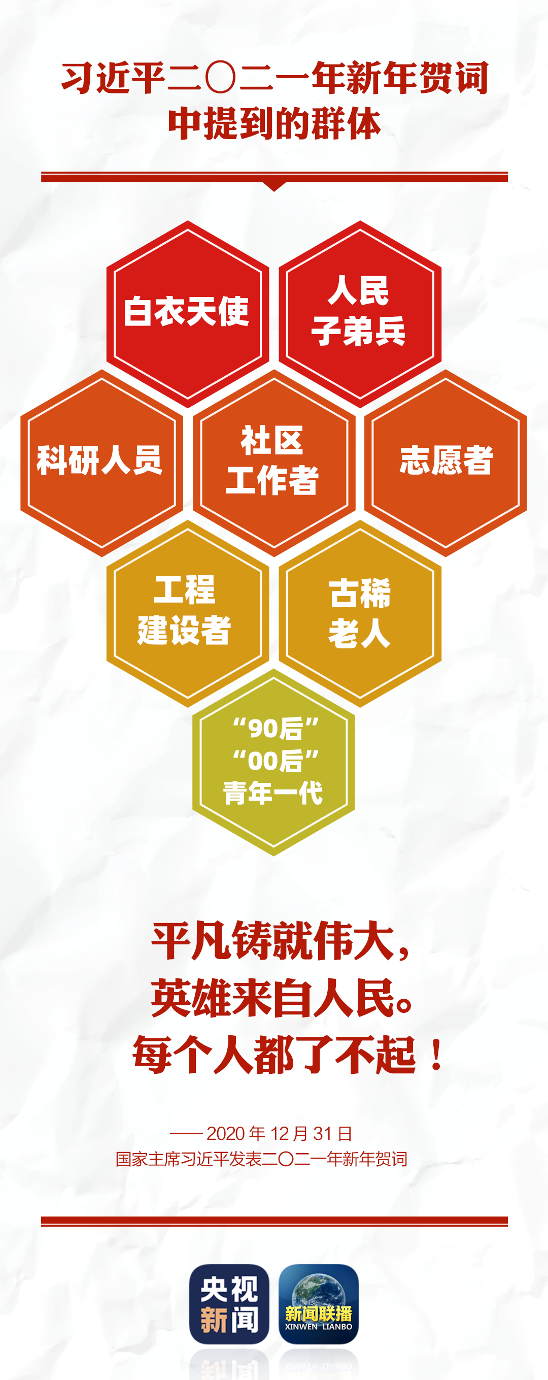 今天,国家主席习近平发表二〇二一年新年贺词。