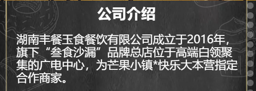 根据天眼查数据,叁拾沙漏的注册公司为湖南丰餐玉食餐饮有限公司,公司股东雍钰玢关联了一家名为湖南墨行文化传播的公司。