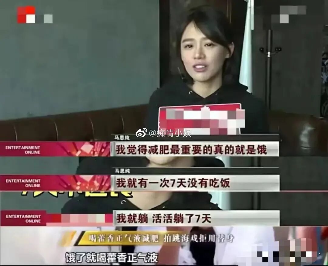 除了外形,身材焦虑也一直困扰着很多人。撇开为了角色不说,女明星胖了,瘦了,都会成为网民热议的话题。致使明星为了维持上镜瘦,使出了很多奇奇怪怪的招数。马思纯喝过藿香正气水。