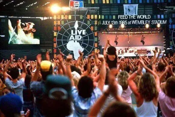 1985年Live Aid,旨在消除全球贫困,最终为埃塞俄比亚难民筹集到约1.5亿英镑善款,140+国家播出实况,近20亿人观看。