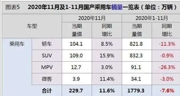 具体到我们所处的汽车行业,则有更深的体会。毕竟,在所有能够影响民生的支柱性产业中,汽车行业是最快复苏的,也是受影响最小的。中国汽车工业协会的数据显示,2020年11月新车产销量分别为284.7万辆和277万辆,同比增长9.7%和12.6%,连续7个月实现两位数增长;1-11月,我国汽车累计产销量分别为2237.2万辆和2247万辆,同比下降3%和2.9%。其中,新能源汽车11月销量为20万辆,同比增长104.9%;1-11月累计销量110.9万辆,同比增长3.9%,首次由负转正。