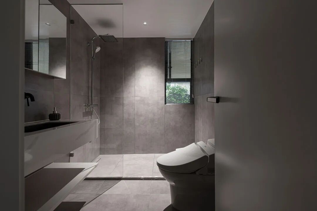卫生间地面和墙面采用了同样规格的大板砖铺贴,让空间显得统一又大气。洗面台采用了台下盆,清洁无死角,使用起来更方便。