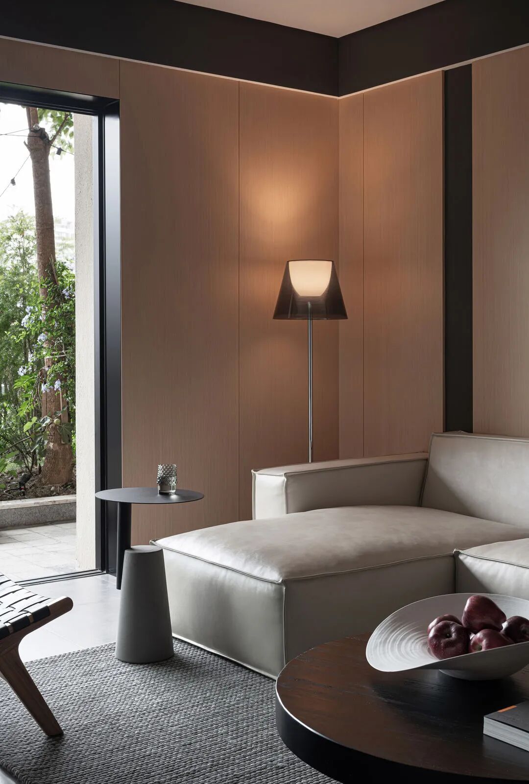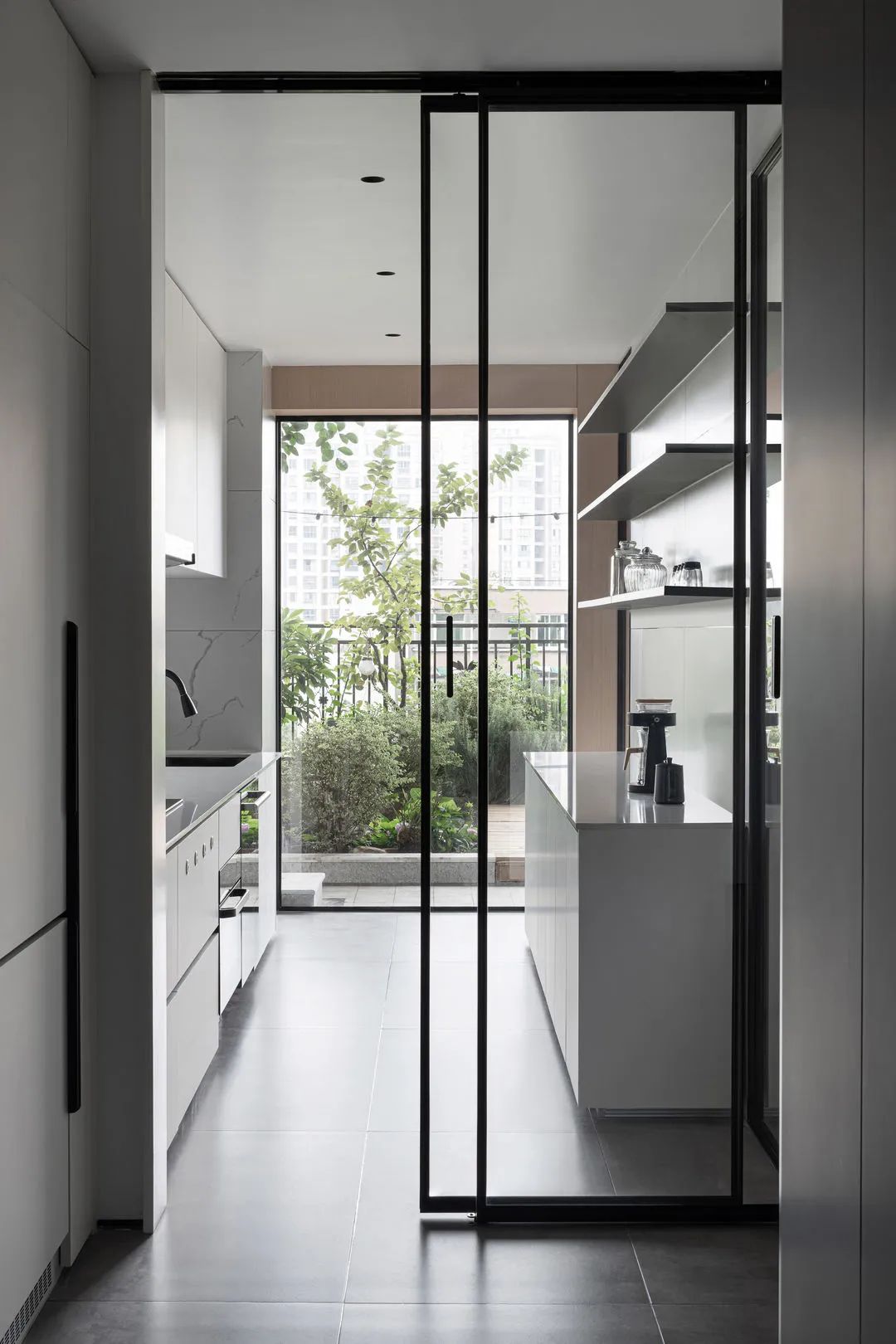客厅与户外花园之间采用了极窄边框玻璃推拉门,无论是在客厅、餐厅、厨房还是书房,都能时时刻刻观赏户外的美景,四季不同的风景也为家融入了更多的期待和乐趣。
