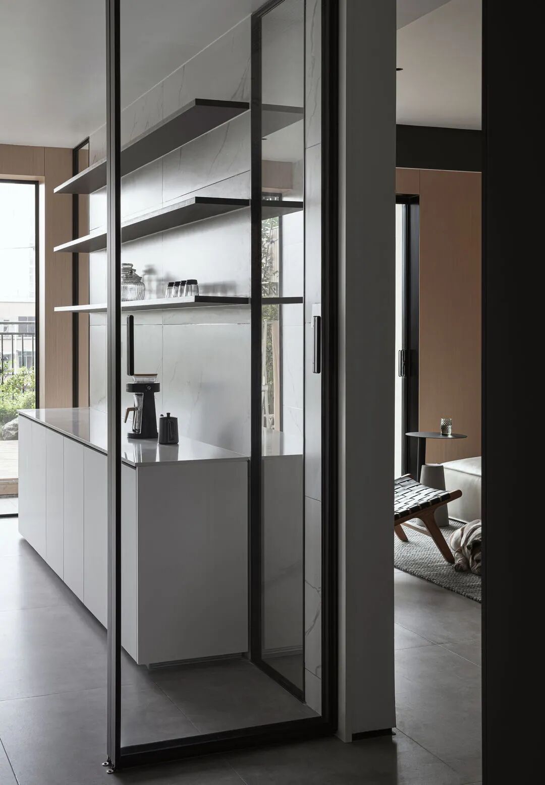 厨房既是独立的,同时与各个空间之间又都是联通的。无论是在玄关、餐厅还是客厅和户外花园,都能与厨房形成视觉交融。