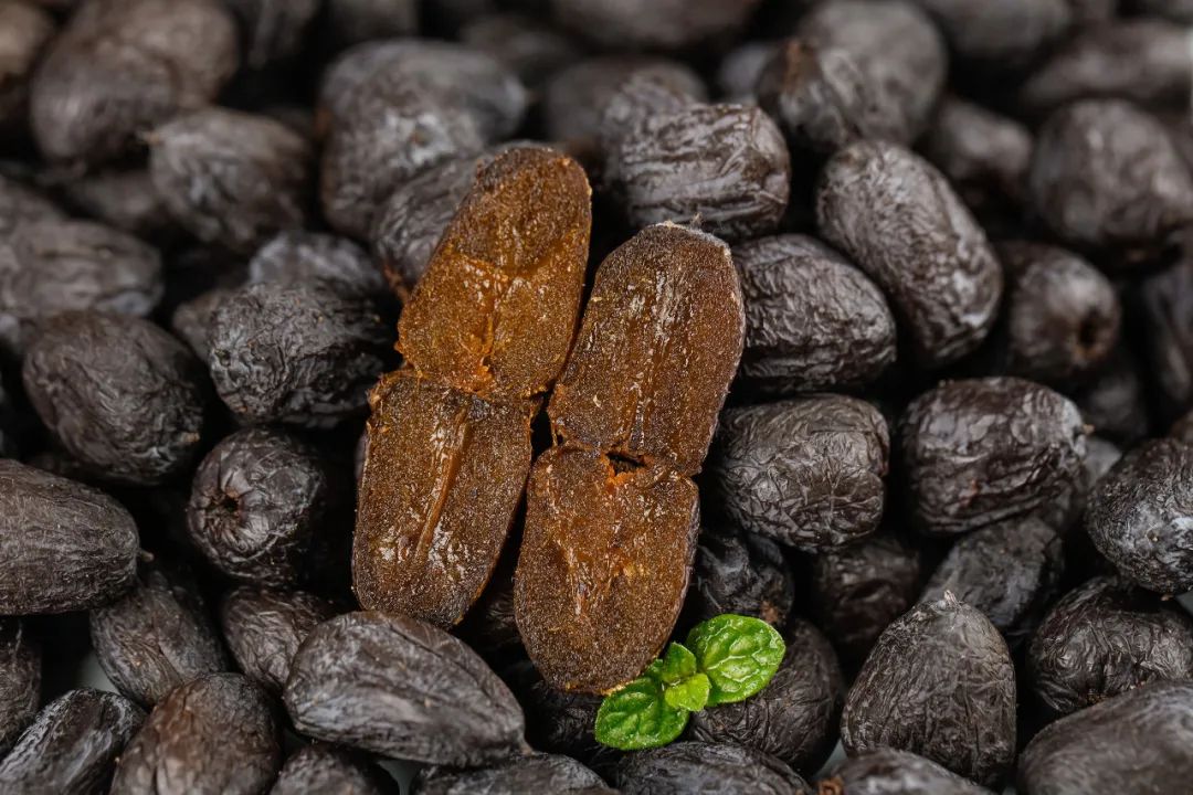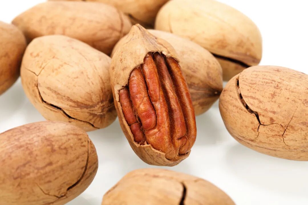 剥掉外皮,里面的种子部分就是碧根果了,与核桃相比,碧根果的核更薄,经过炒制、烘烤后,更脆更易剥开,口味有点焦糖的感觉,也是大家最喜爱的坚果之一。