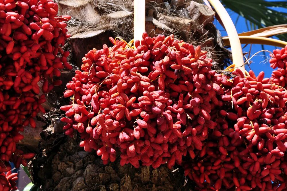椰枣,顾名思义是一种椰树结的枣子,这种椰树名叫海枣椰,原产于北非、中东地区,我国南方也有,台湾、海南、云南、两广、福建等地均可栽种。