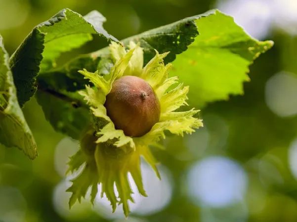 榛子开花很早,头年秋天就开花,像毛毛虫似的,冬天也冻不死,春天授粉结果,果子被苞片包裹着,夏秋变成黄色时为成熟,可以采摘食用。