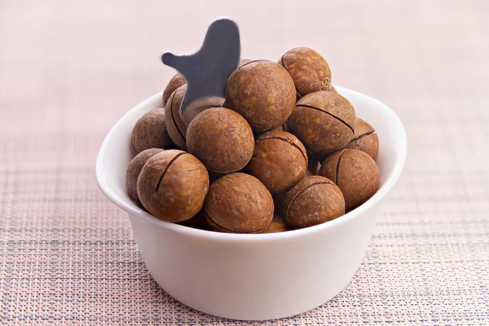 夏威夷果还有一个名字,叫澳洲核桃,这么说大家就明白了,它的生长过程和核桃很像,不过它喜欢阳光充足、温暖湿润的环境,长相比北方核桃要圆润多了。