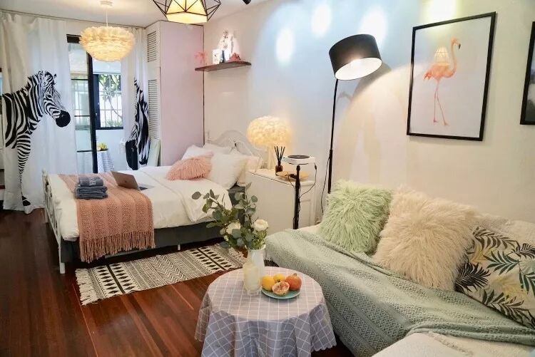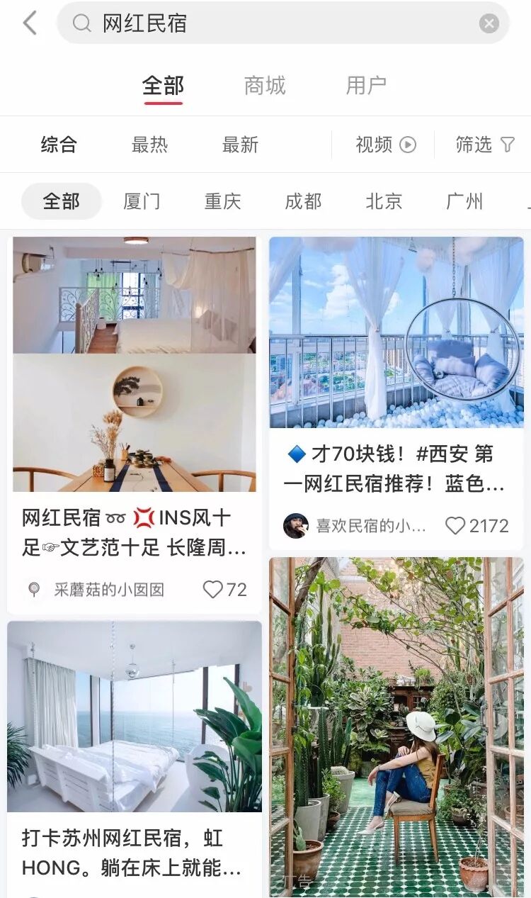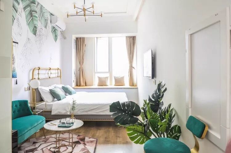 去本地人从来不会去的热门景点打卡,吃相似的特色美食,买回雷同的旅游纪念品,就连玩乐一天后回到的那个民宿也似曾相识。打开订房app,无论你在“目的地”一栏输入北上广深,还是二三线城市,搜索结果中几乎都会出现网红风民宿。所谓“天下一家”,也不过如此吧?清一色的绿植元素出现在装饰画、桌布、门帘和地毯,偶尔还有几盆龟背竹真身出现在房间角落;还有缠满梦幻小吊灯的铁架网,装满尤加利叶干花的牛皮纸袋,几何图案编织地毯。高度的相似性令人不禁怀疑这些民宿的主人是在同一家淘宝店下的单。