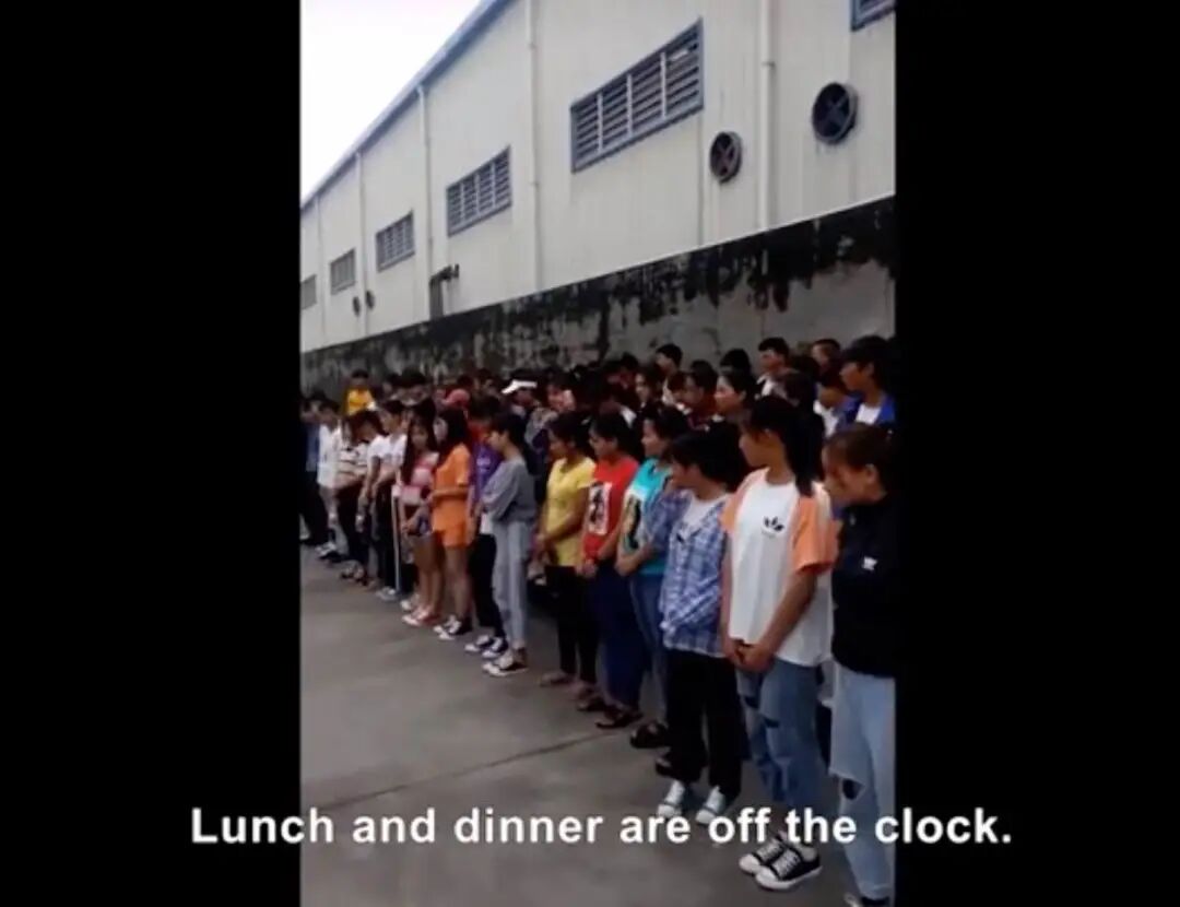 上厕所要主管批请假条,厕所门口都有保安看着。