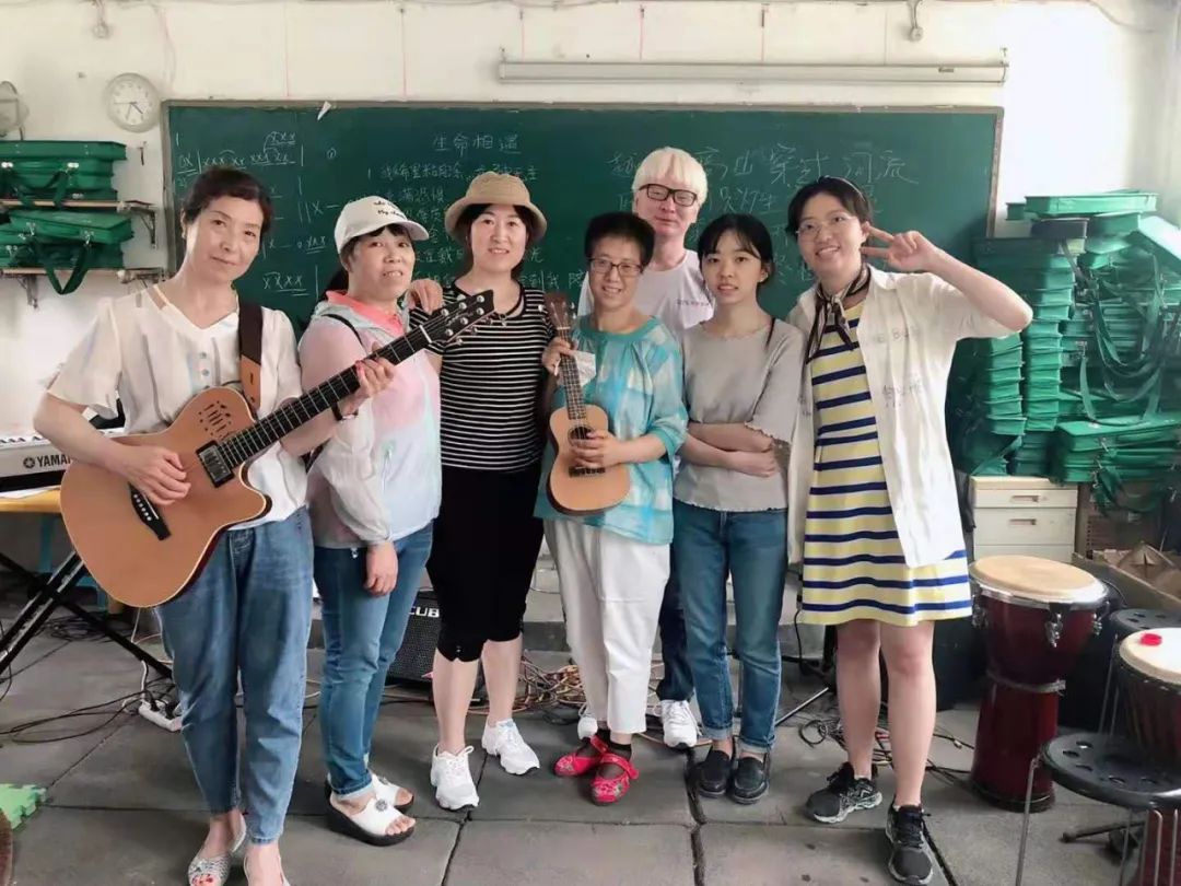 音乐课上,老师从哆来咪发开始教,怎么呼吸,什么是音阶。歌词音准一个字一个字抠。大家围成一个扇形,面对着黑板。上面教一句,五个人一一唱一遍。