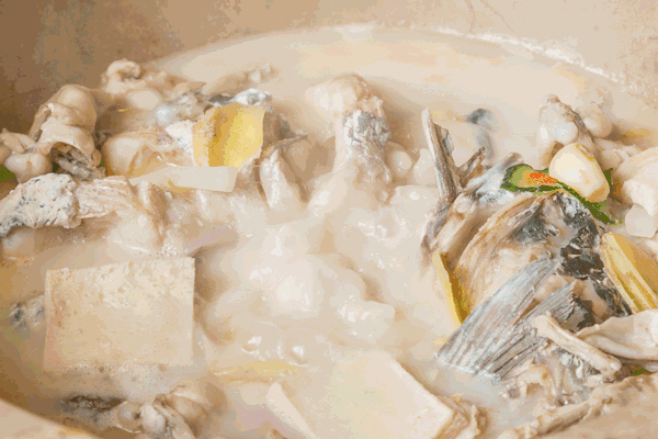 鱼火锅有很多种,石锅鱼清淡养生,鱼和豆腐炖出的汤呈奶白色,极富营养价值。