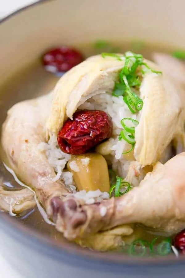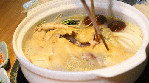 参鸡汤的每一样食材都让人回味无穷,用人参熬出的味醇靓汤、鲜嫩的鸡、还有吸满汤汁香软的糯米,不愧是养生佳品!