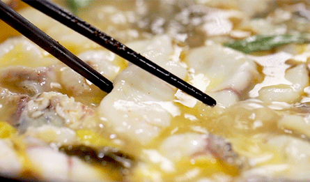 酸菜鱼口感酸爽,鱼肉在酸菜的渗透下,也变得开胃起来,抿一口滑嫩弹牙,酸香诱人~菌菌口水已经忍不住快要流下来了!