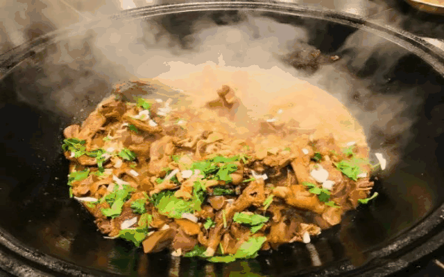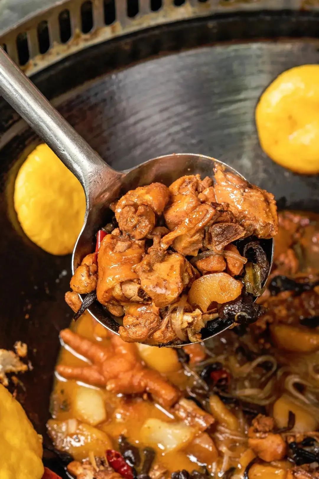 占据大半个桌面的铁锅,炖上鸡、鸭、鹅、鱼,锅盖一掀开,热腾腾的蒸气带着食物的香味扑面而来,直接围着锅吃,满满的人间烟火气!