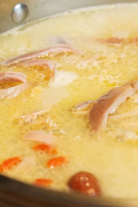 参鸡汤看起来清清淡淡平平无奇,但撕开鸡肚子,才会发现里面充实的底料~