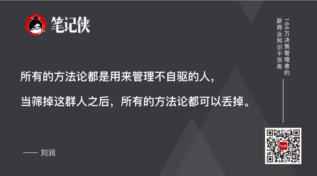 只招成年人意味着只招愿意自驱的人,这样就可以将管理不自驱的人的方法论都扔掉。所有的方法论都是用来管理不自驱的人,当筛掉这群人之后,所有的方法论都可以丢掉,可以自我驱动。