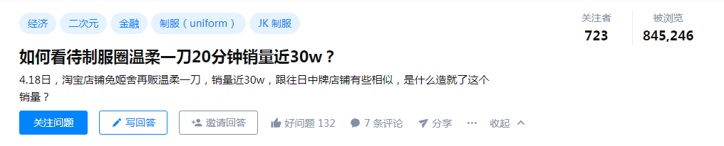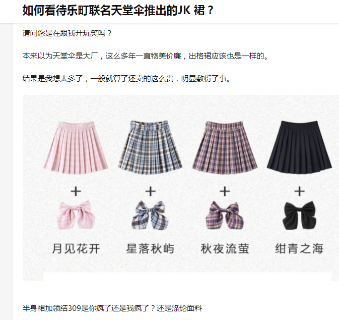 以至于知乎上有这样一个提问:我们是否太惯着JK制服店了?