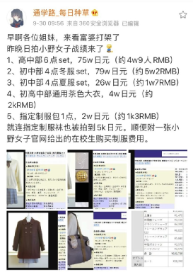 下图中一件拍出8万价格的,就是热门的日本小野女子学院的冬季校供。