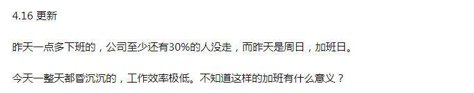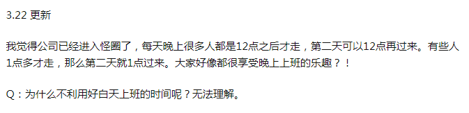 ·知乎上,自称是拼多多员工的人曾多次更新吐槽加班文化。