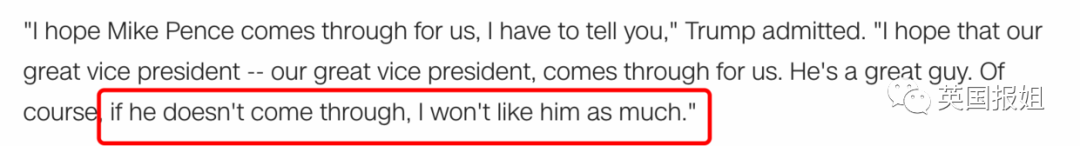 “我希望我们伟大的副总统彭斯,能为我们挺身而出,否则我没那么喜欢他了哦~”