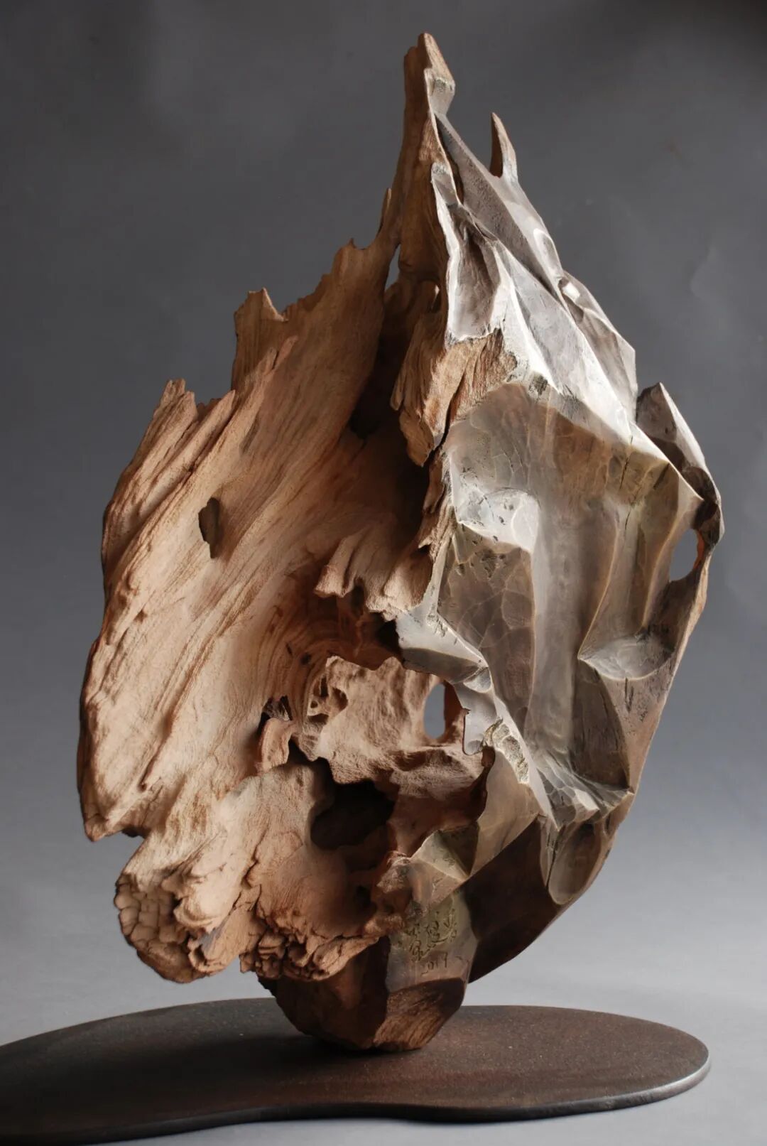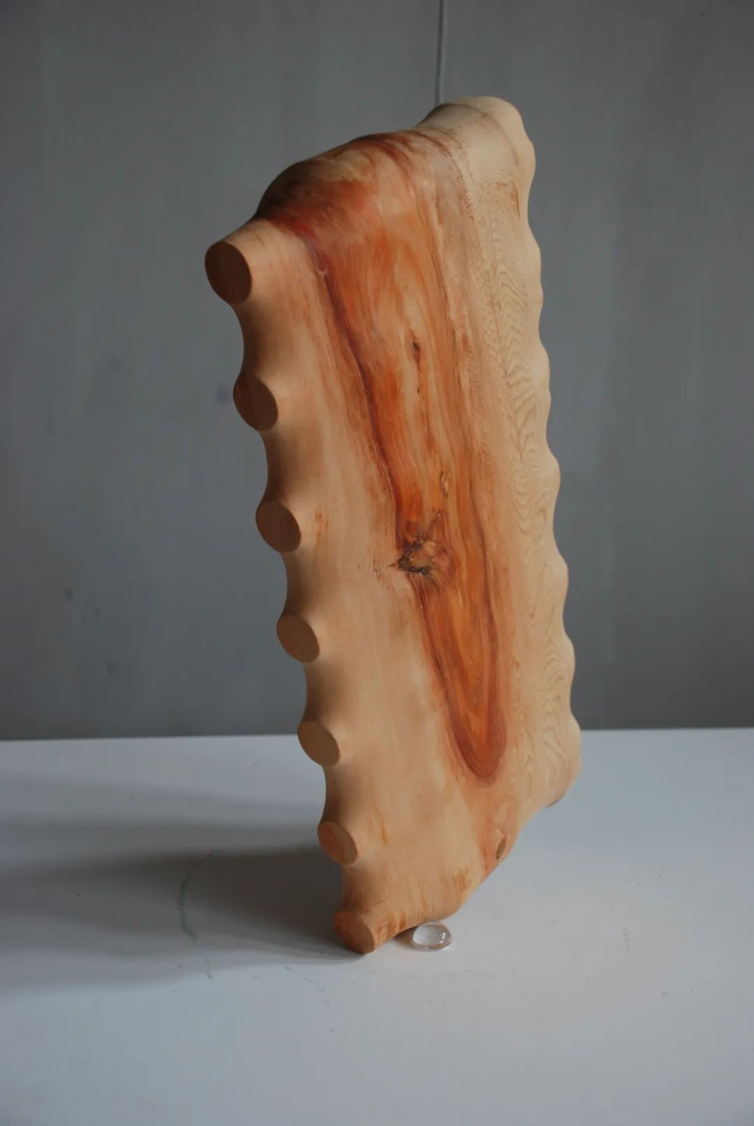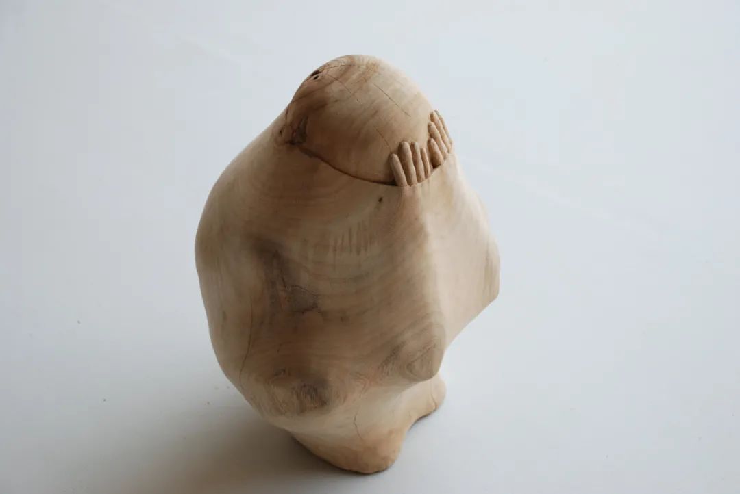 现在的我会喜欢用自然的材料,它们历经虫蚀、雨淋、日晒,是风化木,或是漂流木、树根,各种奇形怪状的木头,甚至有些看起来即将腐烂。我会去接受它们残缺的状态,顺着这个状态去雕刻,让它们有二次生命的产生。因为要照顾两个孩子,我的时间其实被切得很碎。现在的创作有点像是一个自然风化的过程,每天做一点点的改变,日积月累。