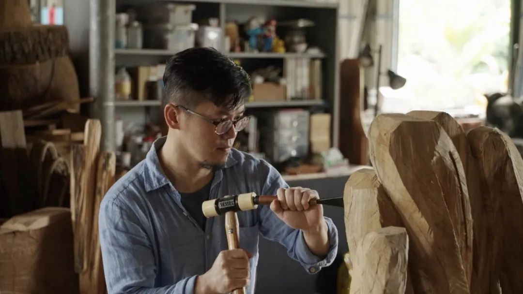 我1980年出生于彰化二水。我们那边都是农村,小时候我很喜欢在自然中漫步,用香蕉树搭棚子,然后躲在里面,仿佛有一个自己的小世界。我家里是一个铁工厂,耳濡目染,我从小就对手作特别感兴趣。18岁,我去到台北艺术大学学习雕塑,并开始专攻木雕,因为木头是自然的材料,给我一种很温暖的感觉。