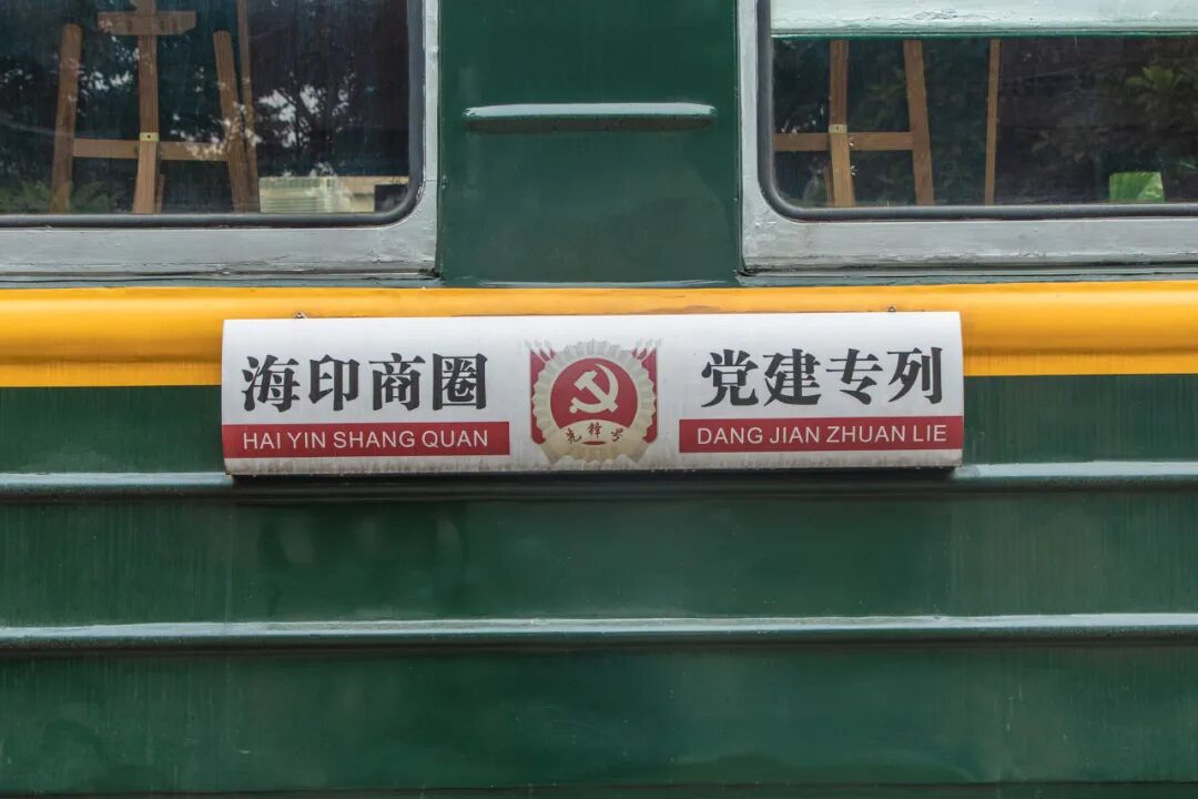 敞亮的绿皮火车连带一片残留的铁轨,是这里的打卡点之一。火车里面其实还是个展览室,可以限时间入内参观歇息。