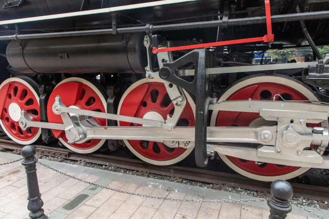 除了绿皮火车,在广九纪念园这里还有一辆红黑的蒸汽火车,一眼看上去十分壮观。