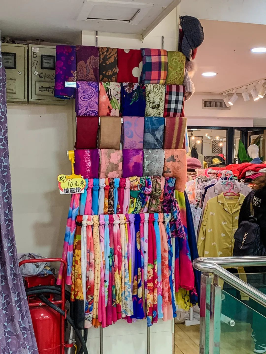 性价比也比较高,师奶最爱的丝巾10蚊就可以拥有一条。