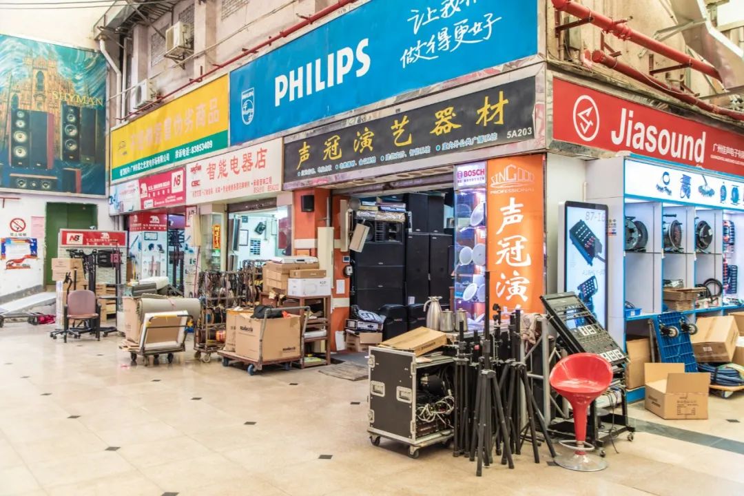 海印电器总汇往前走几步,就可以看到「星之光电器城」,这里是舞台灯光专业音响一条街,有很多高级的音响设备,很多大型舞台设备都陈列在店里。