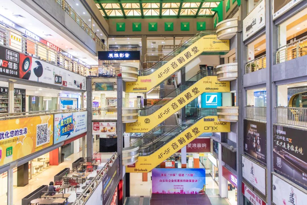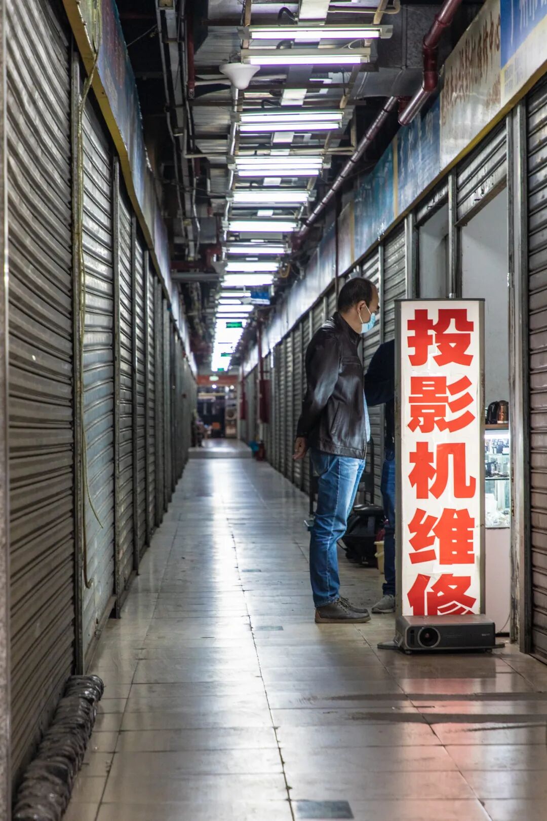 星之光电器城有两个入口,拐弯处的店铺已经关闭得所剩无几,很多店铺都已经搬走,空荡荡的一排全都关上了闸门。只剩下另外一条直街的商铺,他们还在坚持。