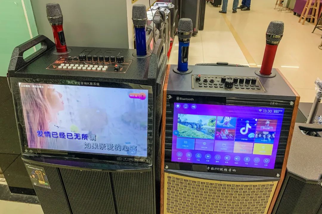 广场舞专用的滑轮音响、唱歌专用的点歌机都摆在门前最显眼的位置。相邻店家相互寒暄,隔着几个摊位都能聊得热火朝天。
